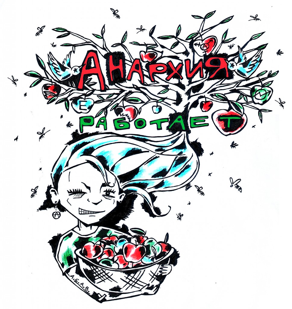 обложка для книги «анархия работает». не знаю, когда выйдет, но мой рисунок там немножко «обработали» и подразукрасили. а мне больше нравится оригинал:)